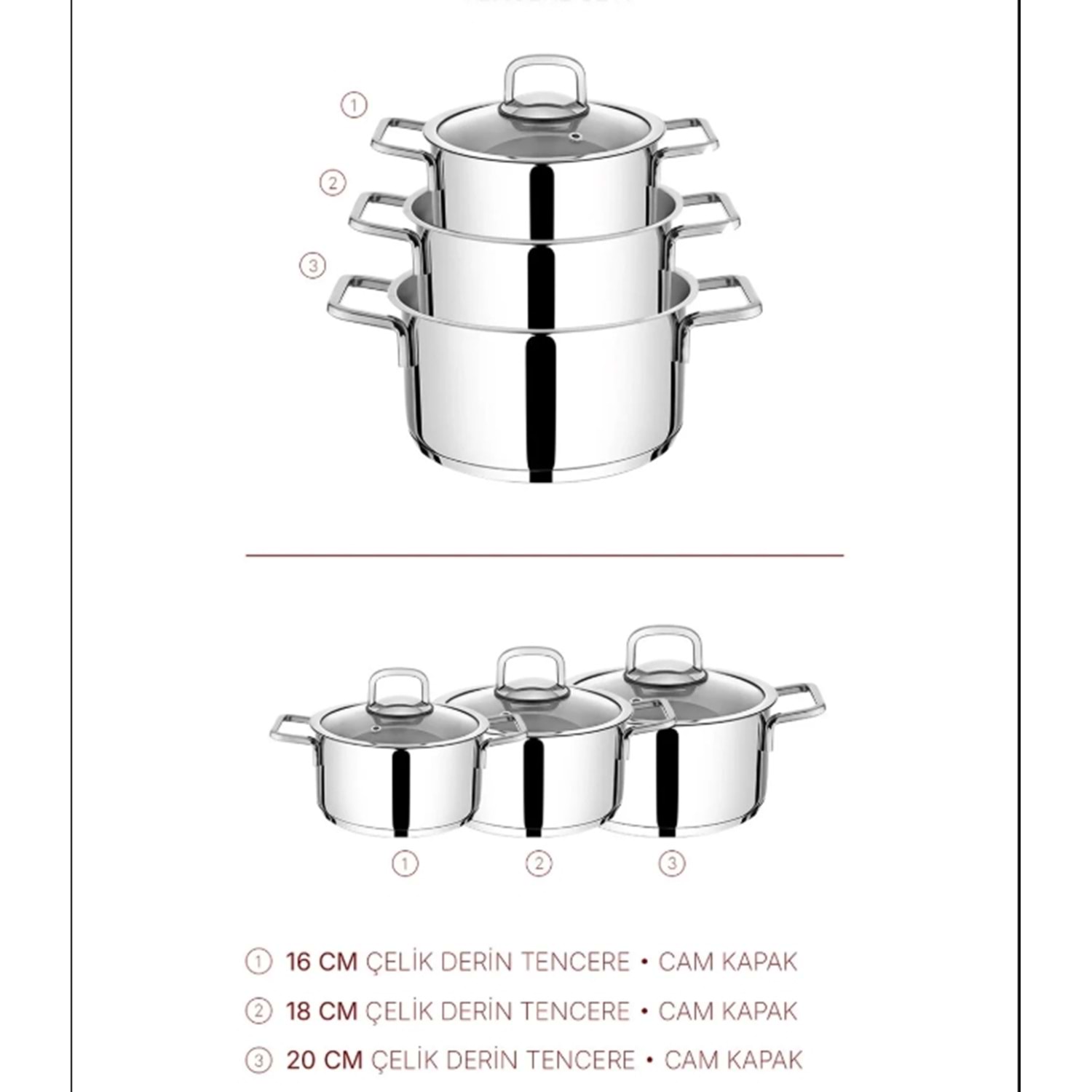 NMS ELİSA 16-18-20 ÇELİK TENCERE SET